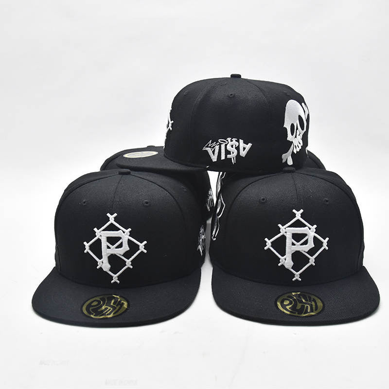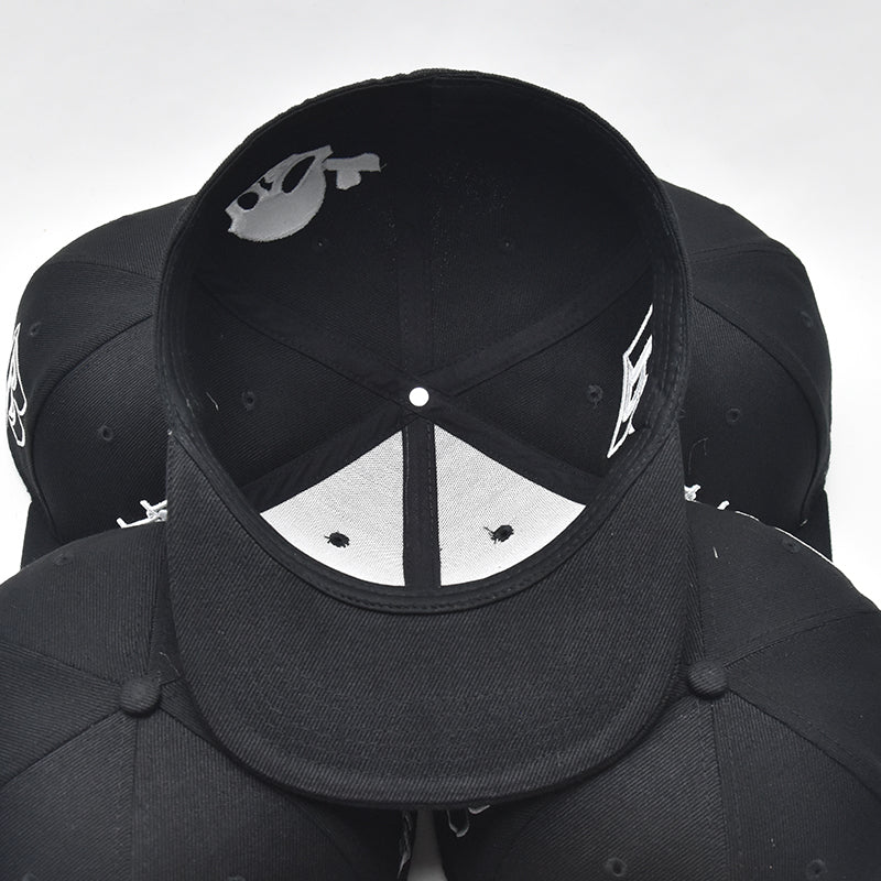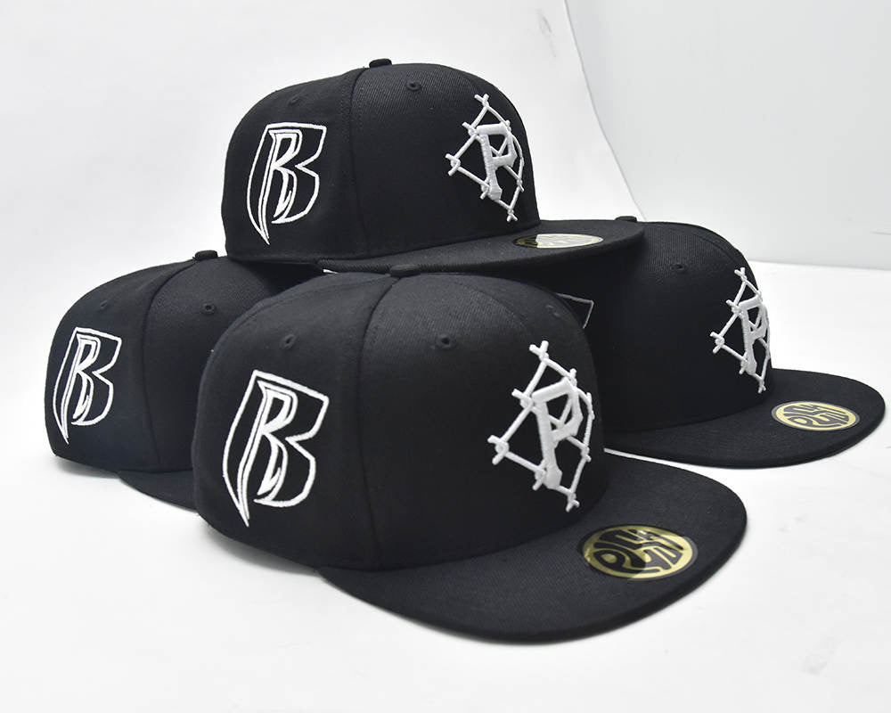 It is a black fitted with tailor made white embroidered patches. Includes gold sticker on top brim and hang tag displaying size.